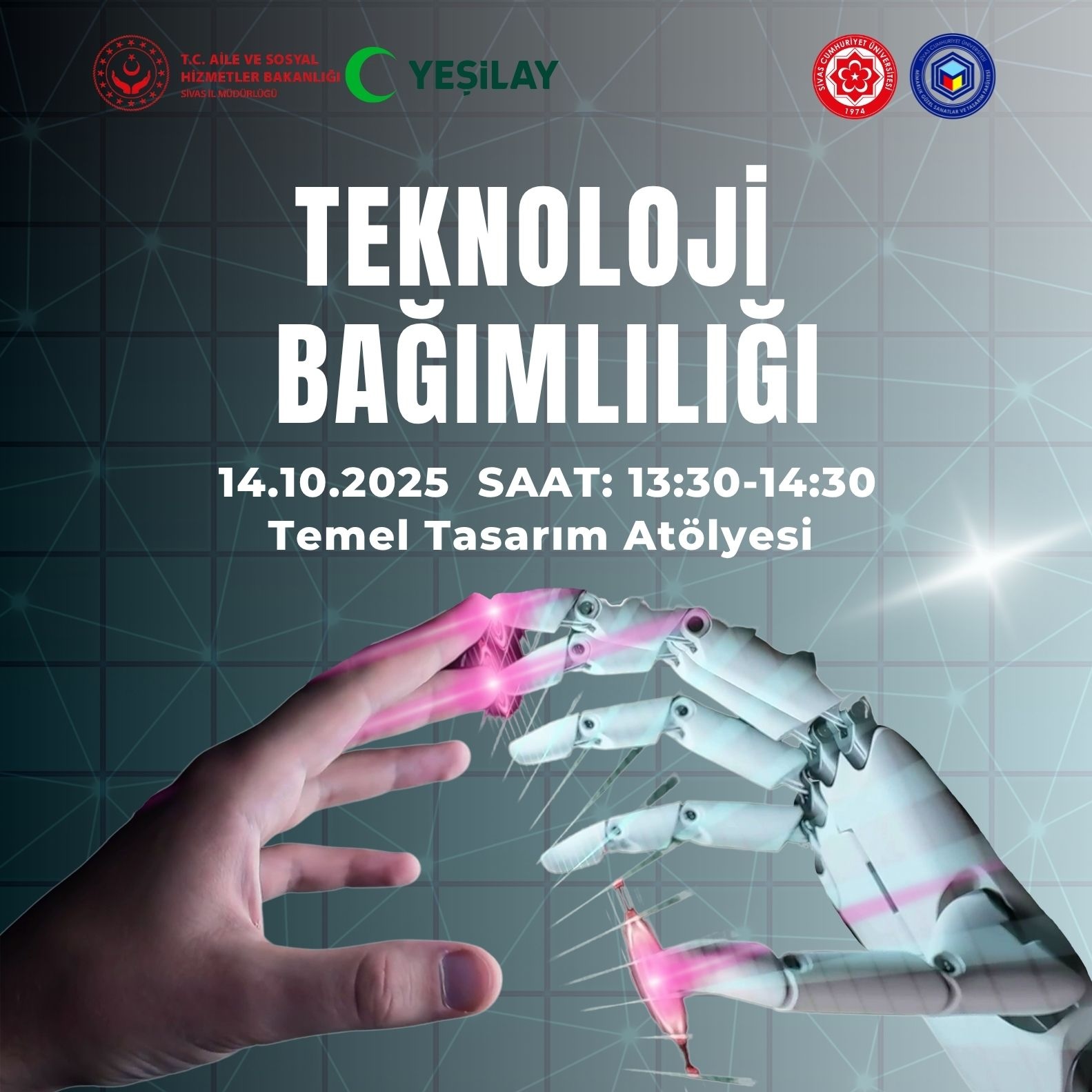 14 Ekim 2025 Salı günü saat 13.30-14:30 arası Sivas Aile ve Sosyal Hizmetler İl Müdürlüğü ve Yeşilay yetkililerince fakültemiz Temel Tasarım Atölyesinde, teknoloji bağımlılığı konusunda eğitim faaliyeti gerçekleştirilecektir.
