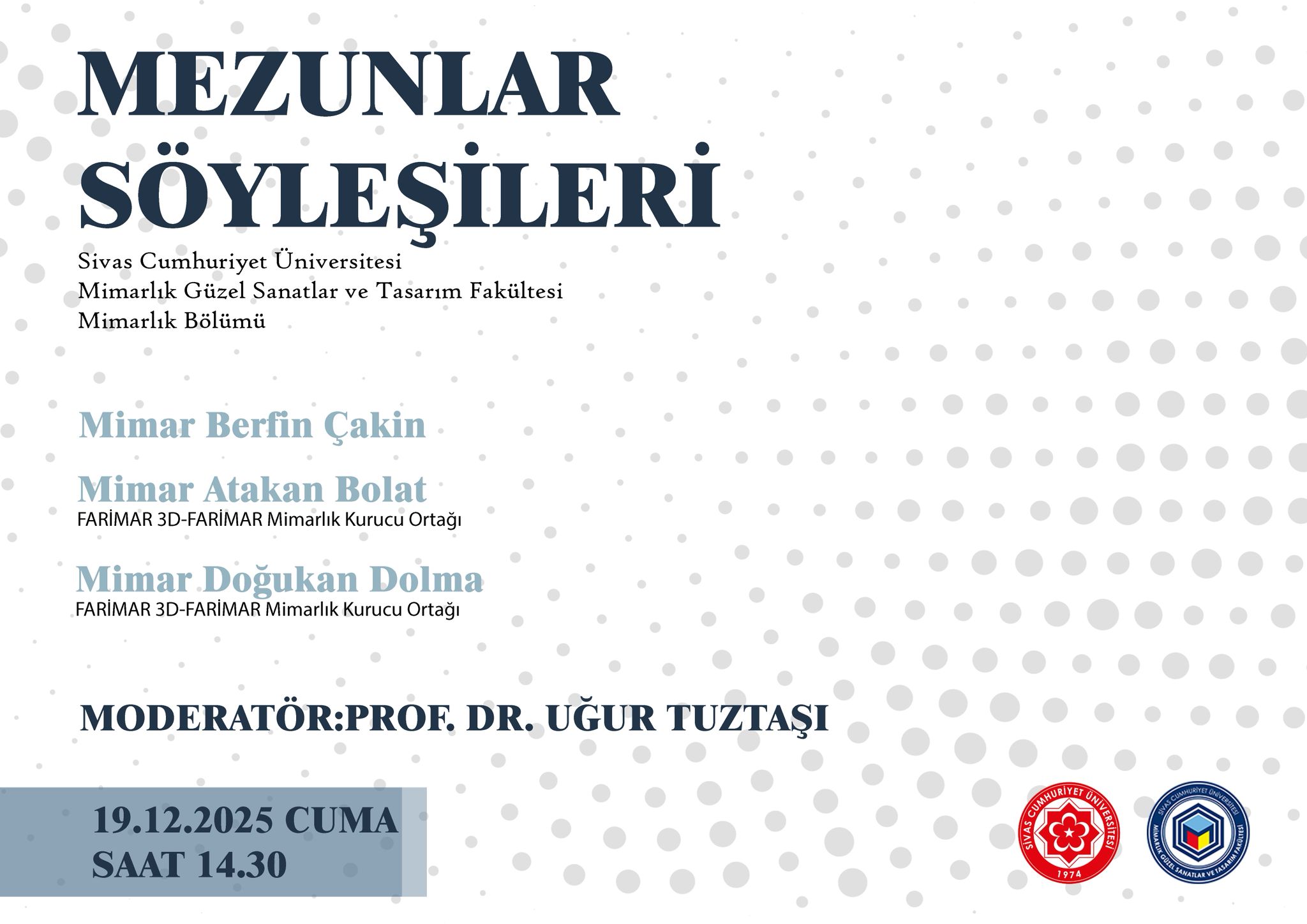 Mimar Berfin Çakin, Mimar Atakan Bolat ve Mimar Doğukan Dolma fakültemiz mimarlık öğrencileri ile söyleşi gerçekleştirecektir.