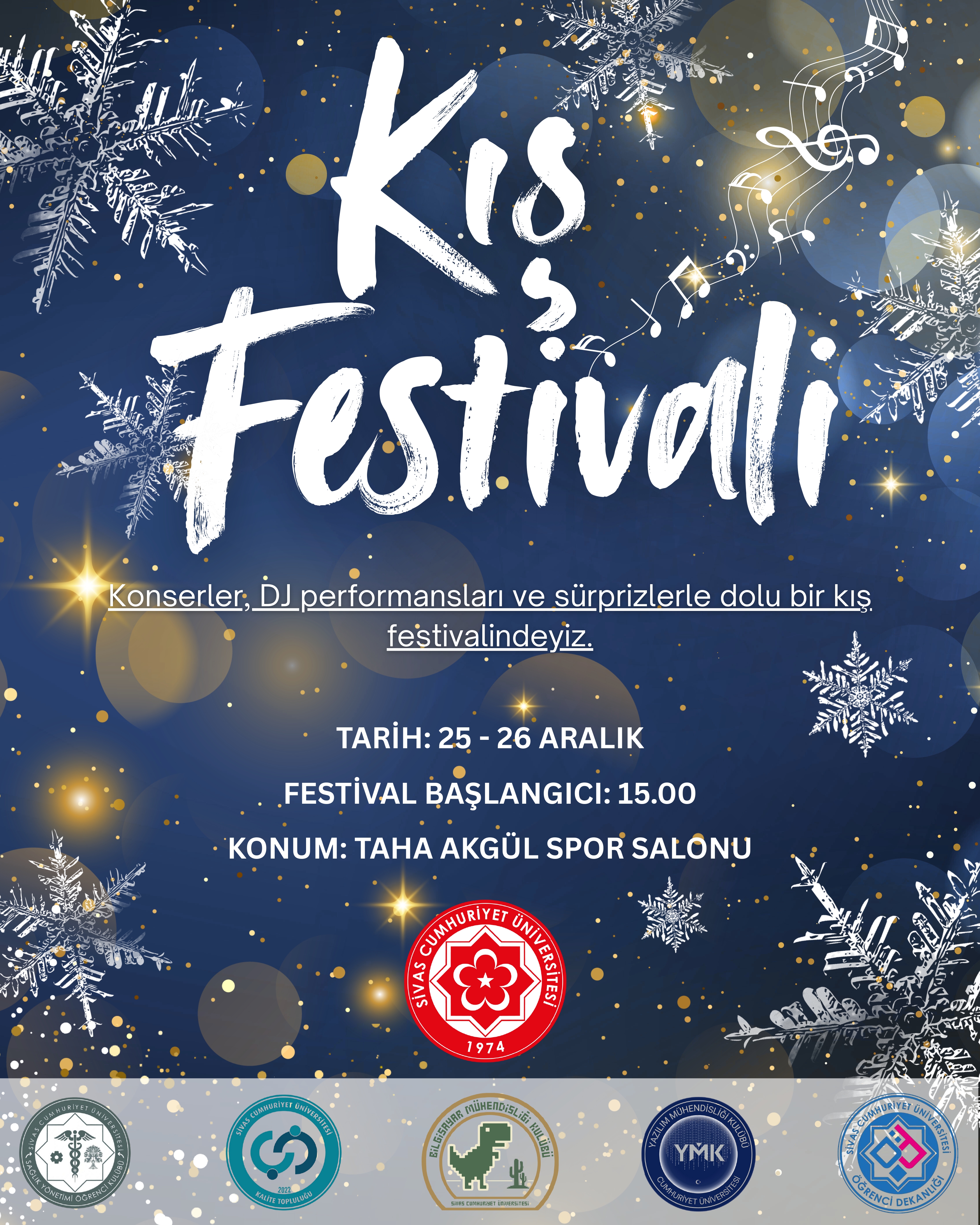 Üniversitemiz tarafından 25-26 Aralık 2025 tarihleri arasında "Kış Festivali" düzenlenecektir.