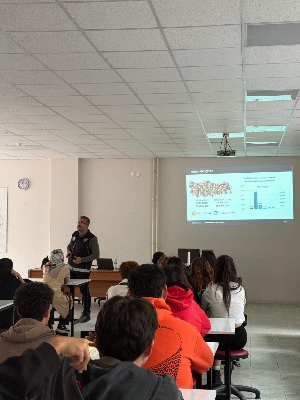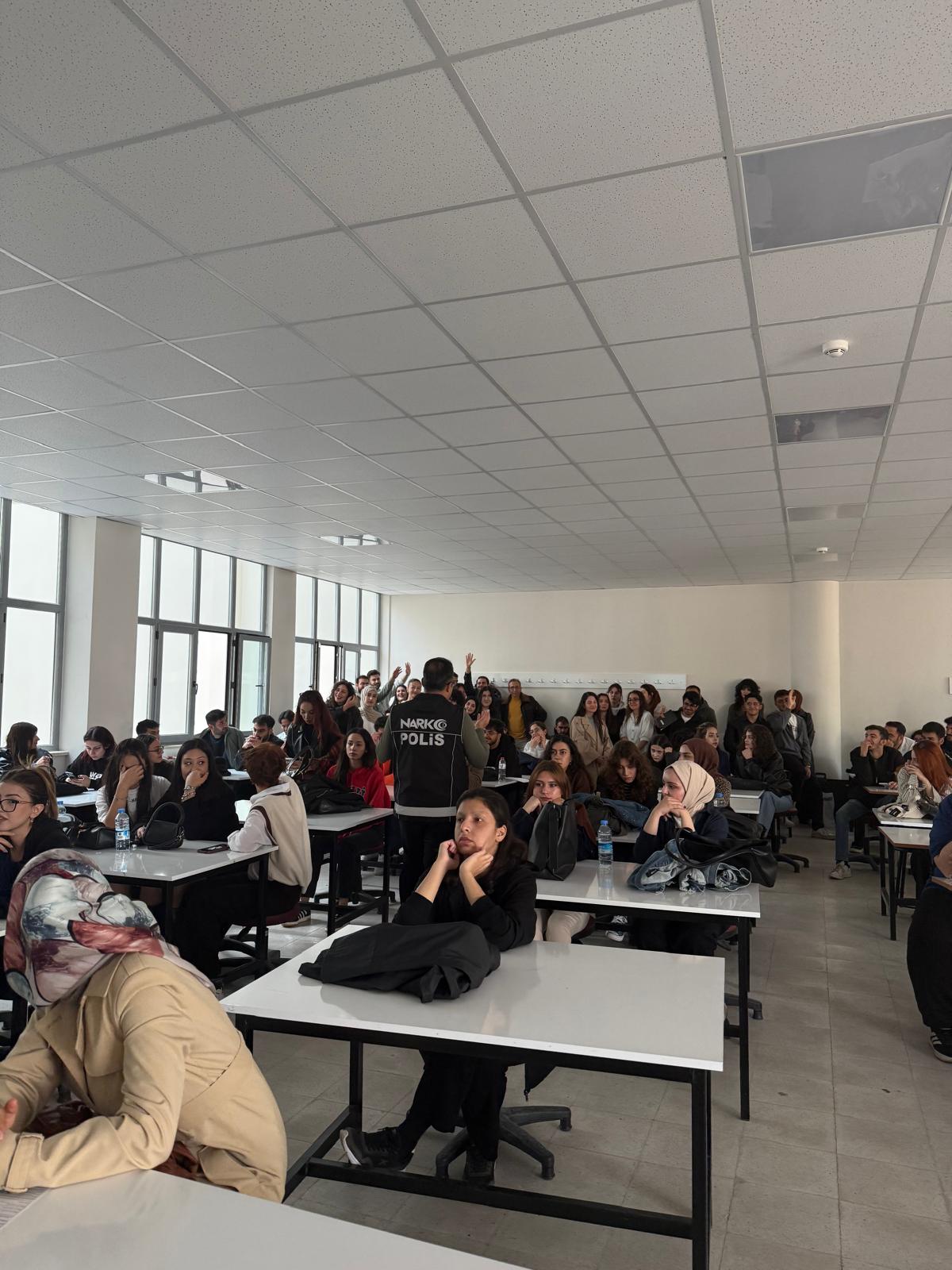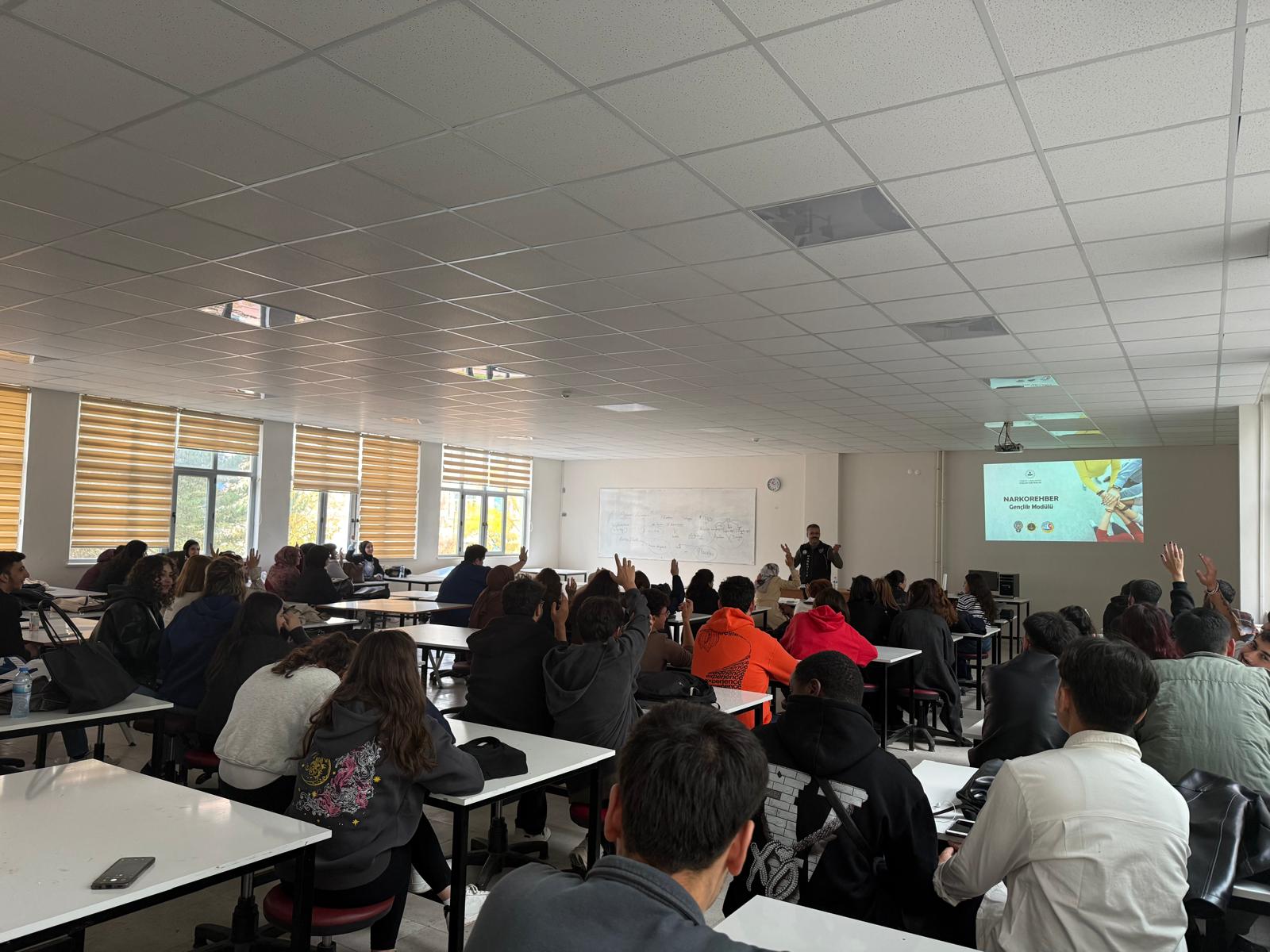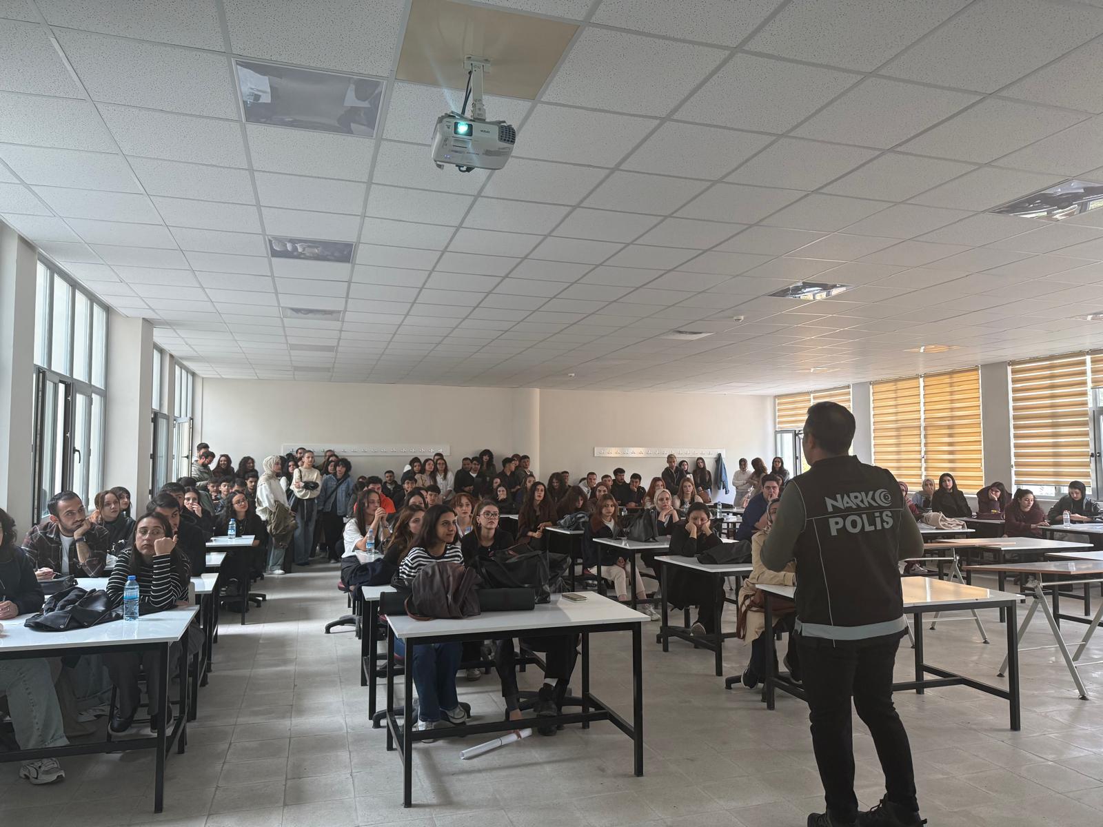 9 Ekim 2025 Perşembe günü saat 10.00'da Sivas İl Emniyet Müdürlüğü yetkililerince, uyuşturucu ile mücadelede üniversite gençliğinin farkındalığının ve duyarlılığının artırılması amacıyla fakültemizde “Narko-Gençlik Konferansı” başlıklı eğitim gerçekleştirilmiştir.