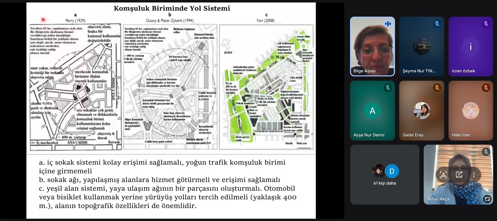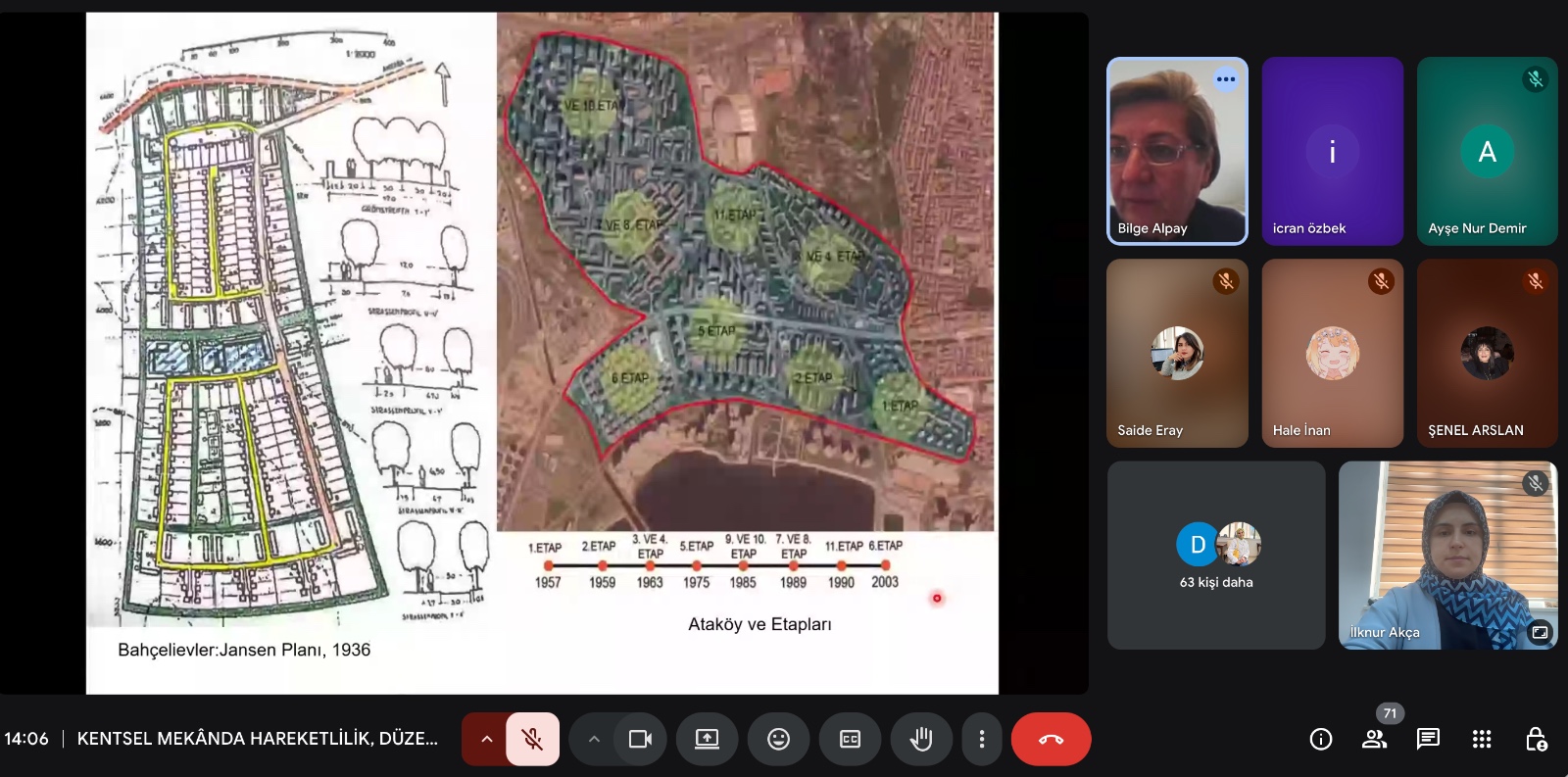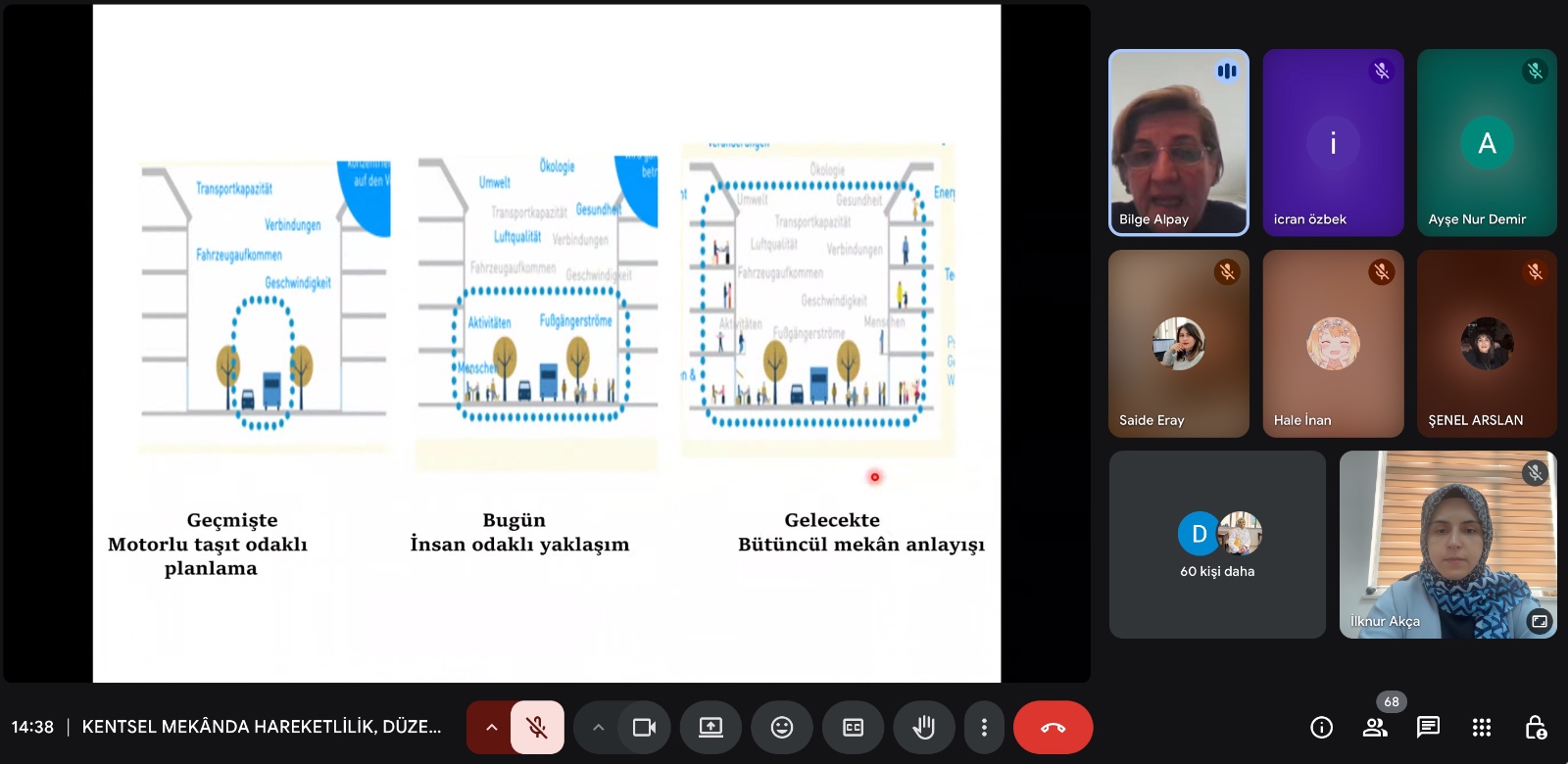Araş. Gör. İlknur AKÇA'nın moderatörlüğündeki “Kentsel Mekânda Hareketlilik, Düzenleme İlkeleri” konulu seminere, Fakülte Dekanı Prof. Dr. Uğur TUZTAŞI, Şehir ve Bölge Planlama Bölüm Başkanı Dr. Saide Selin ERAY, bölüm öğretim elamanları ve bölüm öğrencileri yoğun katılım sağladı. Kentsel hareketliliğin bütüncül mekan anlayışıyla ele alındığı seminerde öğrencilerimiz şehircilik alanı için faydalı bilgiler edindiler.
