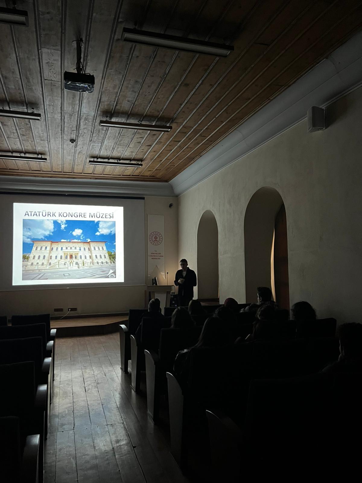 Mimarlık, Güzel Sanatlar ve Tasarım Fakültesi 1. sınıf öğrencilerimiz için düzenlenen etkinliklerin ilkinde Atatürk ve Kongre Müzesi Müdürü İlker DEVECİ tarafından Atatürk ve Kongre Müzesi ve Tarihi Kent Meydanı tanıtıldı. Yapılan konferansın ardından öğrenciler ilgiyle müzeyi gezdiler.