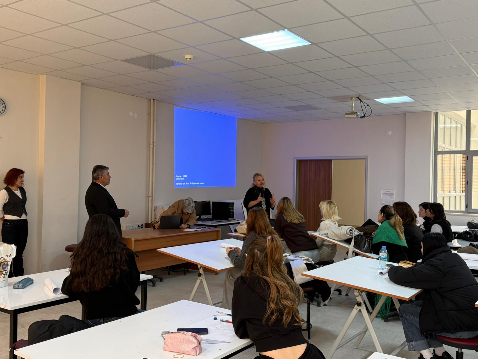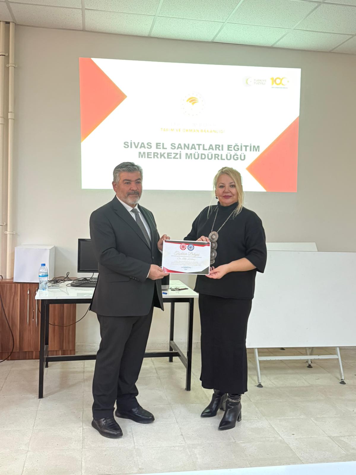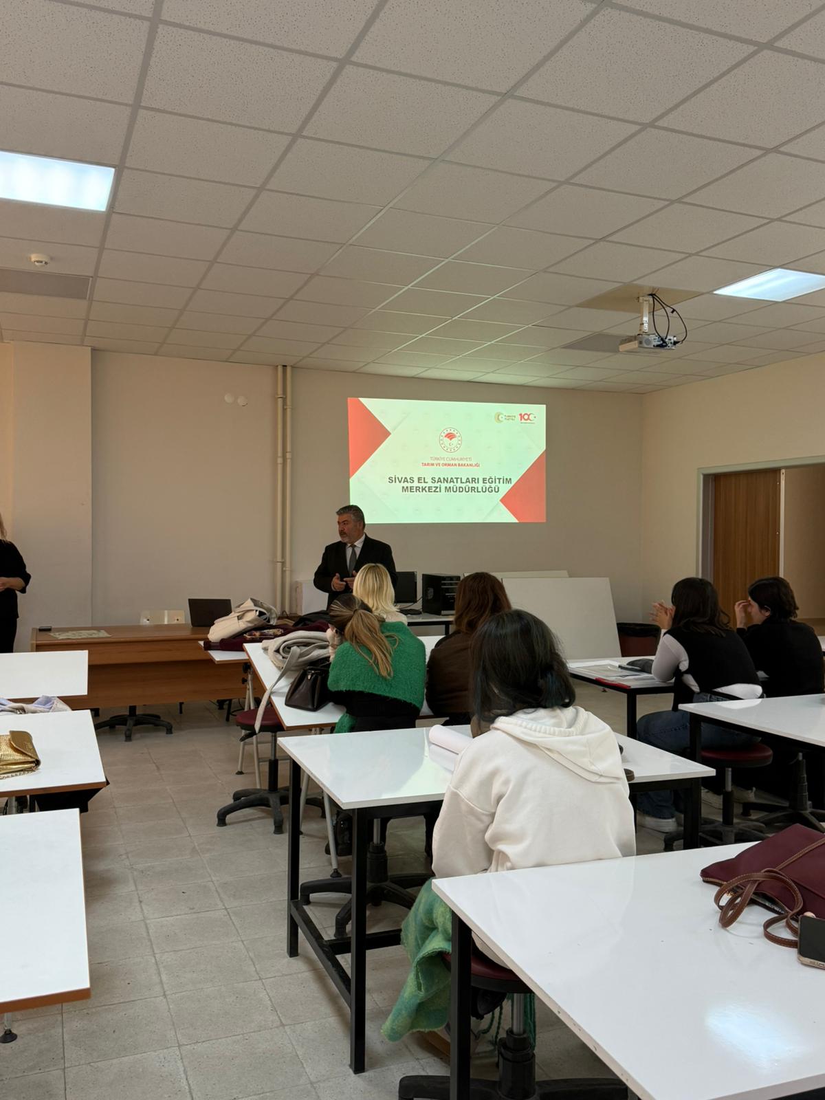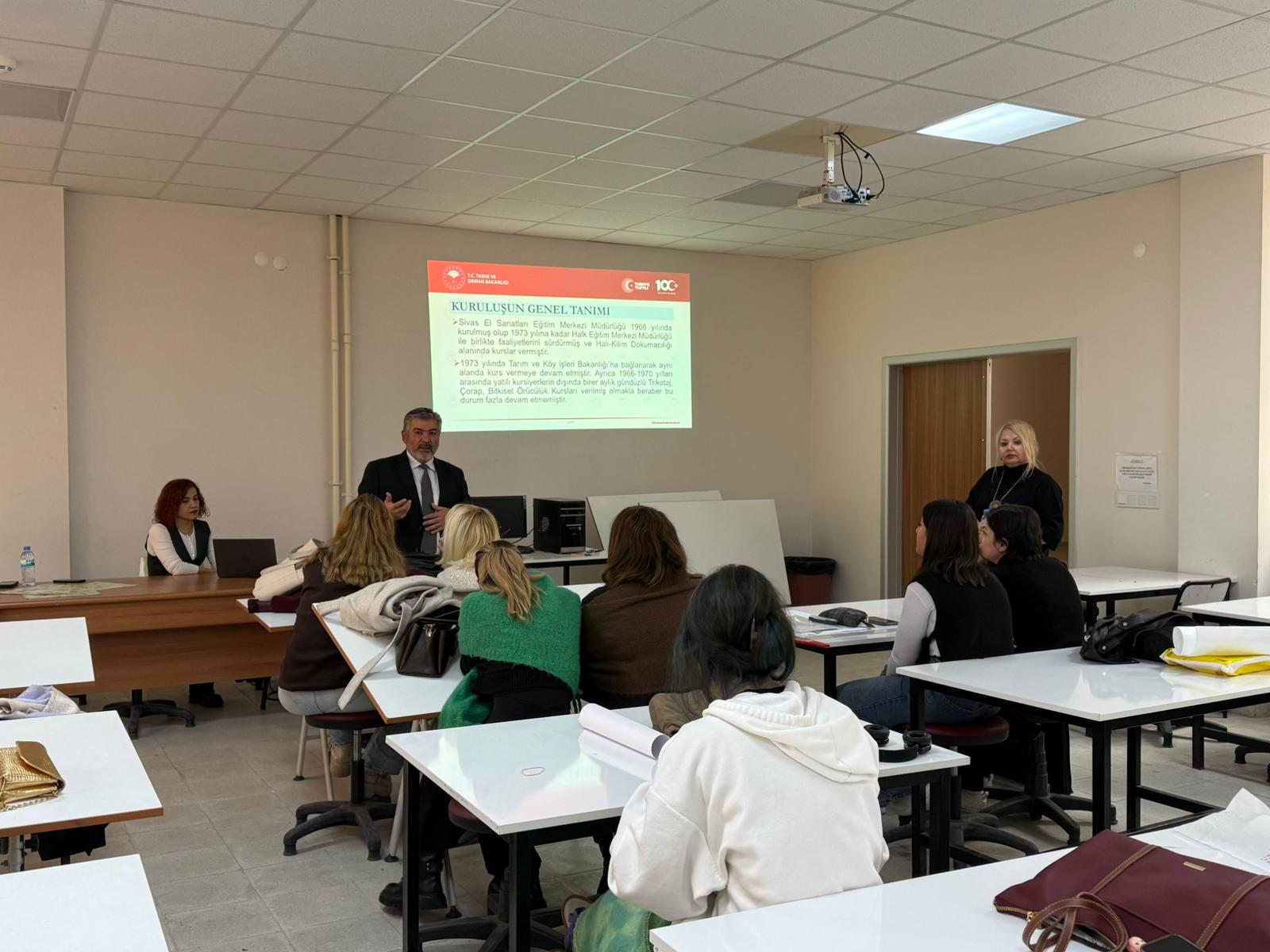 Etkinlik, Prof. Dr. Hülya Kaynar’ın moderatörlüğünde ve Sivas El Sanatları Eğitim Merkezi Müdürü Latif Korkmaz’ın katılımıyla gerçekleşti. “Sanatsal Üretimde Ustalık, El Sanatları ve Eğitim Süreçleri” başlıklı sunum, öğrencilerin mesleki gelişimine doğrudan katkı sunan içerikleri ile dikkat çekti.