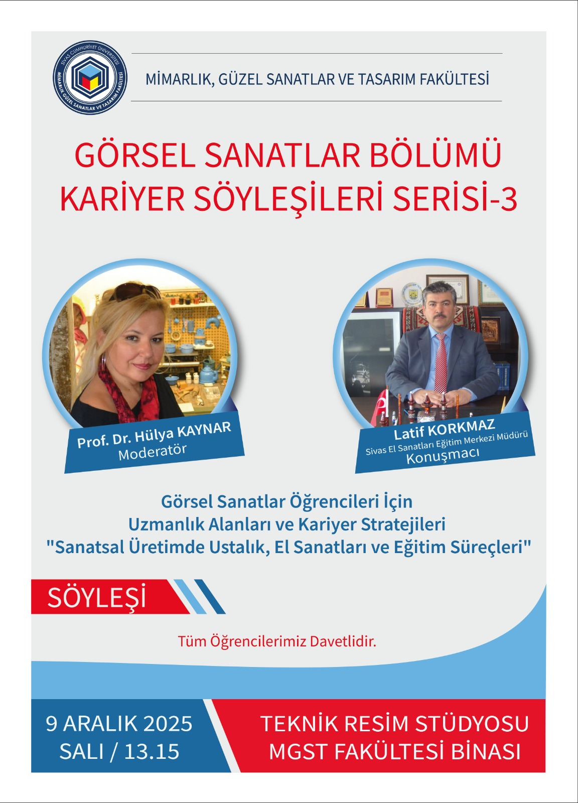 Mimarlık, Güzel Sanatlar ve Tasarım Fakültesi, öğrenci odaklı akademik faaliyetlerine bir yenisini daha ekledi. 9 Aralık 2025 tarihinde gerçekleştirilen Görsel Sanatlar Kariyer Söyleşileri Serisi-3 etkinliği, bu yılın en yoğun katılımlı programları arasında yer aldı.