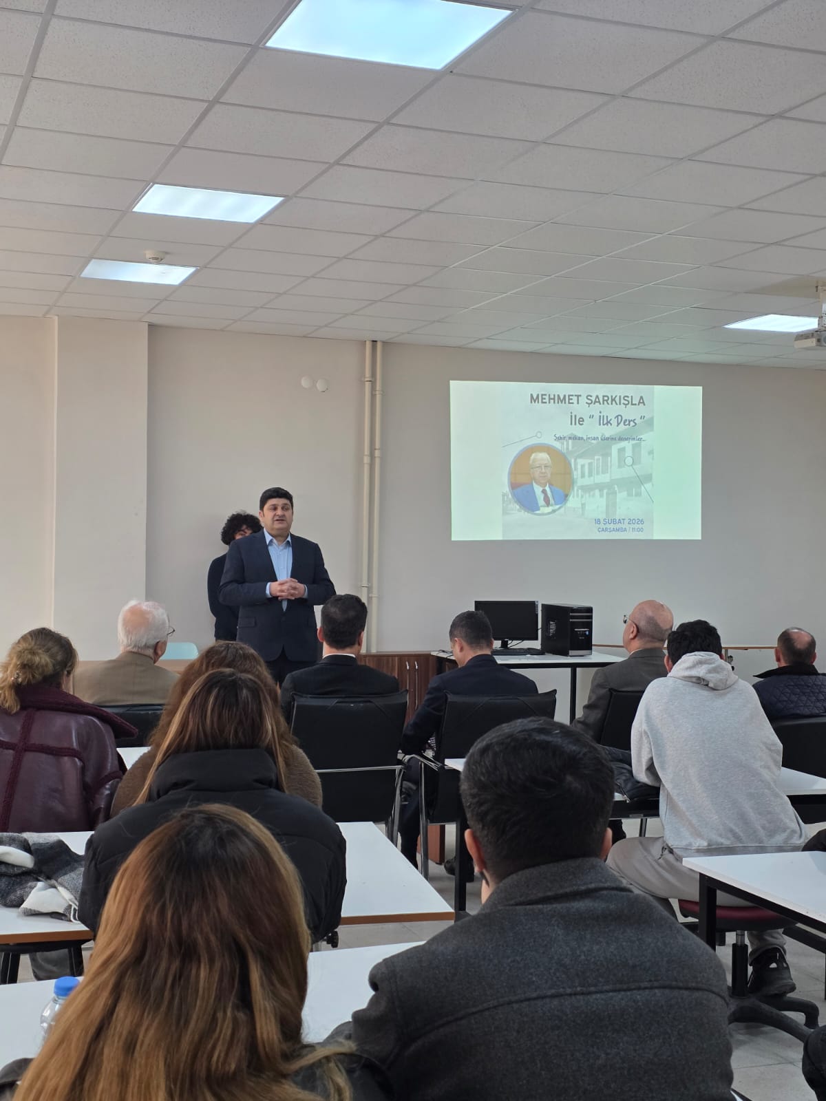 Programın konuşmacısı İl Genel Meclisi Başkanı Mehmet Şarkışla, şehir kavramının yalnızca fiziksel yapılardan ibaret olmadığını; insanın varlığı, kültürel birikimi ve sosyal etkileşimleriyle anlam kazanan yaşayan bir organizma olduğunu vurguladı. Şehir, mekân ve insan arasındaki ilişkinin tarihsel süreçte nasıl şekillendiğine değinen Şarkışla, yerel yönetim deneyimleri ve saha tecrübeleri üzerinden örnekler paylaşarak mekânsal hafıza, kent kimliği ve aidiyet duygusunun sürdürülebilir şehir gelişimindeki rolüne dikkat çekti.