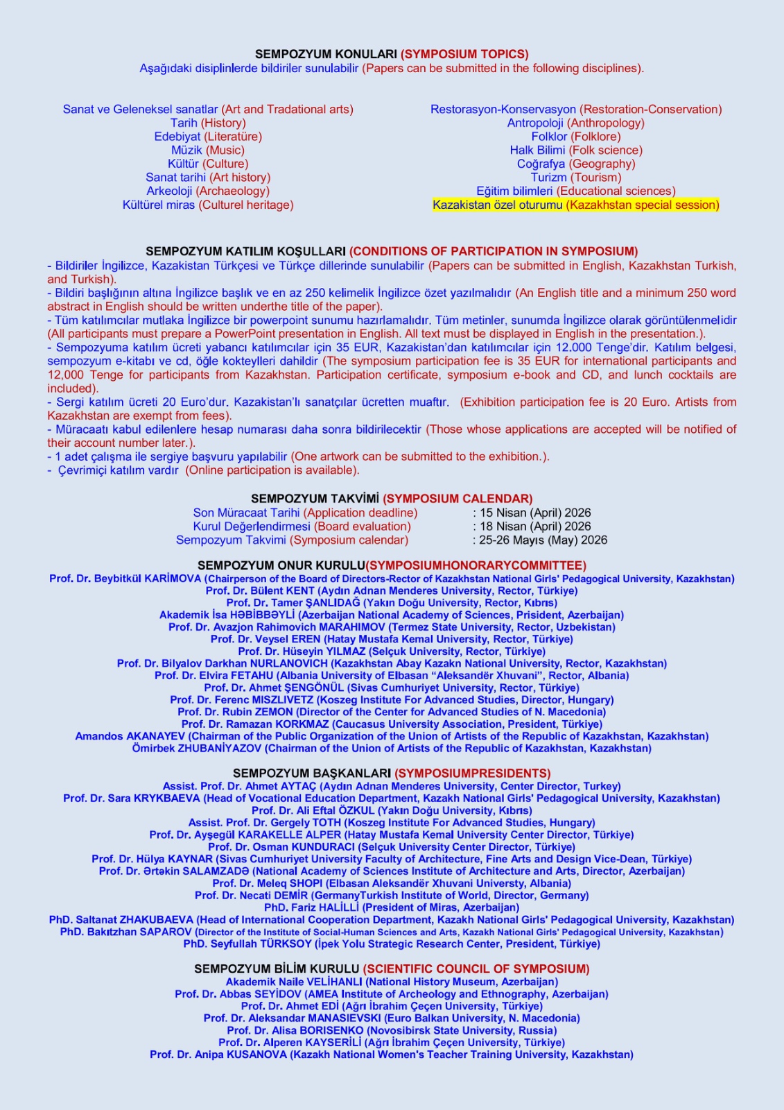 * Sempozyum Tarihi: 25-26 Mayıs 2026