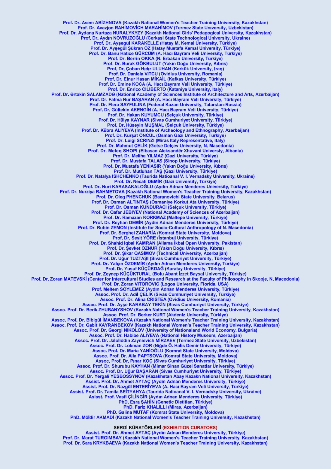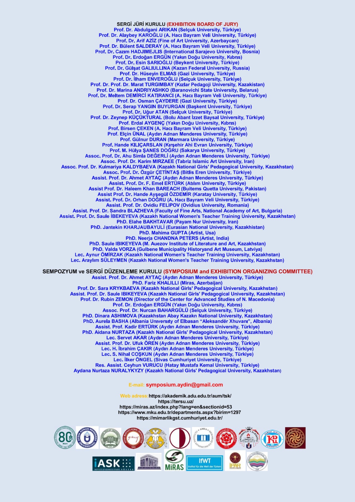 Sempozyumun eş başkanlığını Fakültemiz Dekan Yardımcısı Prof. Dr. Hülya Kaynar yürütmektedir. Sempozyumda; Dekanımız Prof. Dr. Uğur Tuztaşı, Dekan Yardımcısı Doç. Dr. Karabey Tekin ve Doç. Dr. Pınar Koç Tuztaşı da bilim kurulunda yer almaktadır. Sivas Cumhuriyet Üniversitesi’nin yanı sıra Aydın Adnan Menderes Üniversitesi, Kazak Ulusal Kızlar Pedagoji Üniversitesi ve daha birçok uluslararası paydaşın iş birliğiyle yürütülen bu sempozyum, Türk kültür köprüsünü güçlendirmeyi hedeflemektedir. Türk kültürünün korunması ve gelecek nesillere aktarılması vizyonuyla düzenlenen kongre; Türkiye ve Kazakistan başta olmak üzere tüm Türk devletlerinden bilim insanlarını, sanatçıları ve kültür araştırmacılarını aynı platformda buluşturacaktır. Sempozyum başvuruları devam etmektedir.